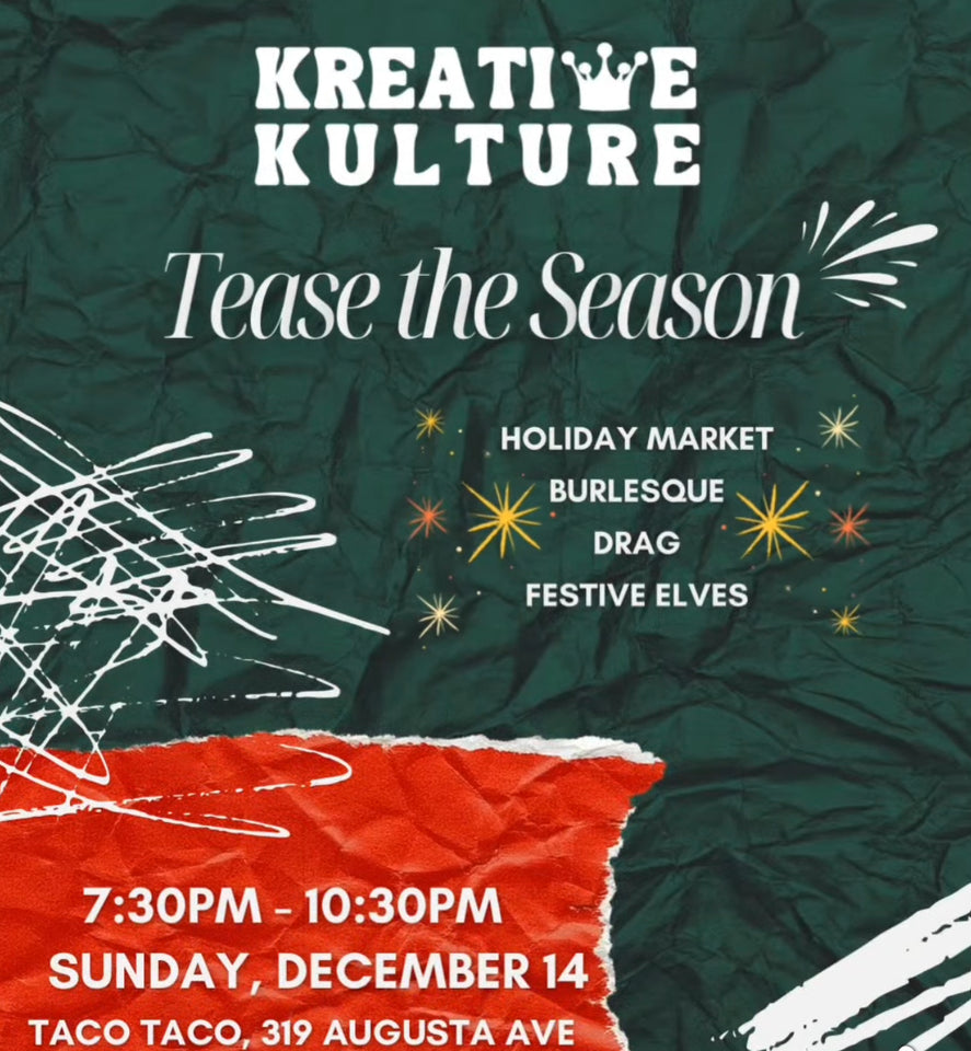 "It's almost time again, for the Kreative Kulture Holiday show Tease The Season. Featuring Burlesque, Drag, and a quaint and wholesome Holiday Market featuring local community vendors. 🎄⛄